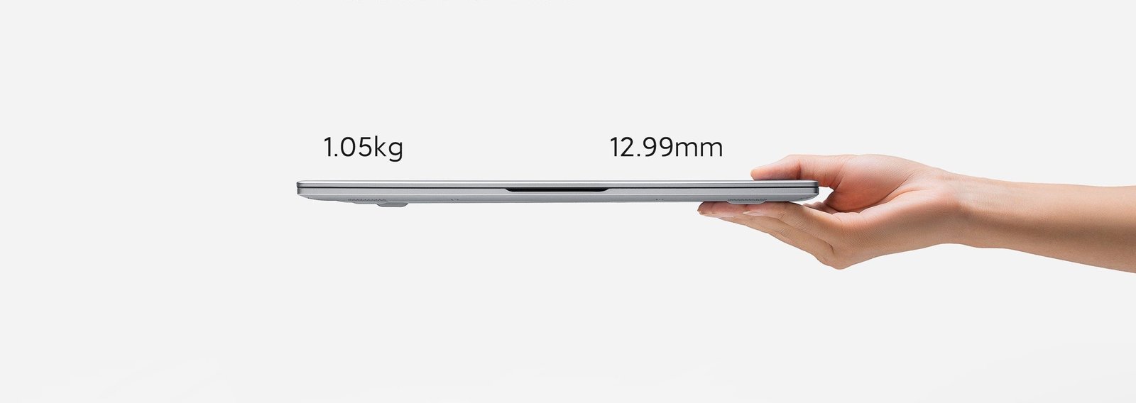 Para ir cerrando ya, algunos datos básicos sobre tu nuevo portátil Xiaomi. Nos encontramos con un largo de 297.5mm y un ancho de 212.0mm, con un grosor de apenas 12.99mm. En cuanto al peso se refiere, está justo en los 1.05kg, siendo el más ligero de todos los portátiles Redmibook.