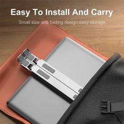 Soporte para portátil Xiaomi plegable y ajustable a diferentes niveles. Hecho de robusto y ligero aluminio de aleación con acabado premium. Toda la superficie que hace contacto con el portátil se encuentra cubierta en silicona para facilitar un agarre total y evitar que el equipo resbale.